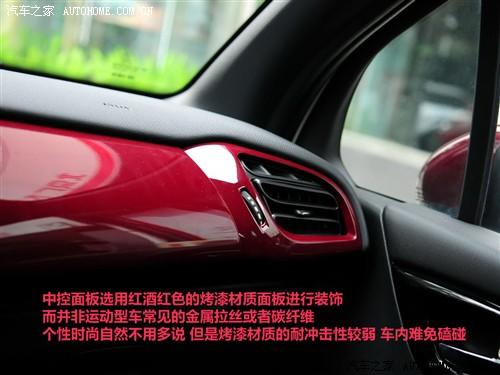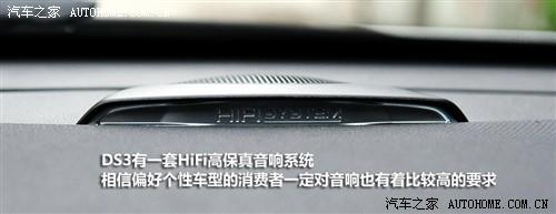 中控面板選用紅酒紅的烤漆材質面板作為裝飾,并非我們常見的金屬拉絲或碳纖維,相信大多數人都會覺得時尚個性,但是多想一步的話,烤漆材質抗沖擊的能力不是很強,在車內難免磕碰。儀表臺上HiFi system的標識告訴我們DS3有一套高保真音響,一般個性車的消費者對音響都有著較高要求,不知道這套設備能否讓車主滿意。