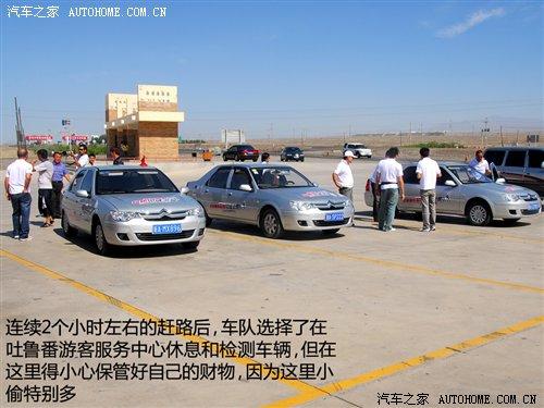 公路兩旁開始出現(xiàn)了以金黃色沙子堆成的山丘,車外的溫度也越來(lái)越高,窗外吹來(lái)陣陣的暖風(fēng),這也意味著我們開始進(jìn)入吐魯番了。在進(jìn)入吐魯番之前我們已經(jīng)經(jīng)過(guò)連了2個(gè)小時(shí)的趕路,為了安全起見(jiàn),我們選擇了吐魯番游務(wù)服務(wù)中心休息,而車主和維修人員則開始忙忙碌碌地檢測(cè)車輛。