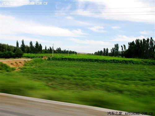 離開國道后,我們隨即進入了國道,前面又是一條看不到盡頭的路,此時我們還離今天的目的地—哈密市大約還有260公里左右的車程。路途漫長,沿途的風景也沒有太大吸引力了,只好睡覺打發剩下的時間。一覺醒來,已經是晚上8點了,看到旁邊的防沙林后意味著我們已經開始進入哈密市區了。