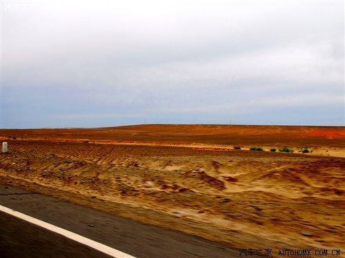 1個小時的車程后,公路兩旁不再是那土房子和綠綠的田地了,取而代之的是戈壁灘。此時公路兩旁也沒有了太多的景物,遠處看到的是清晰的地平線,什么叫做天地結合或許此時你會深有體會。