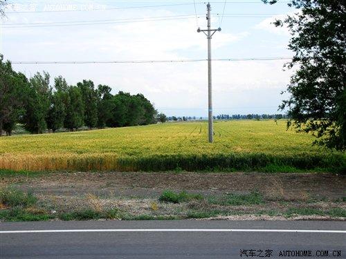 途中我們經過了一些駐彊部隊的村莊,在這里可以看到農作物豐收的景象,一片片金黃的小麥田、一片片綠綠的西瓜田、公路兩旁整整齊齊的大樹等等這些都是當地才有的農村特色,也是當地農業興盛的最好證明。