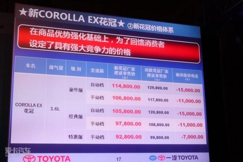改款花冠EX價格發布