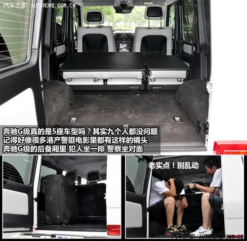 除了能載物外,奔馳G級(jí)后備廂兩邊的凸起正好可以坐下每邊兩個(gè)人,不過這樣上路可是法律所不允許的,所以像上圖那樣警察押送犯人的情景還是僅限于靜態(tài)比較好。而當(dāng)掀起整個(gè)后排座椅后,寬大的后備廂足以運(yùn)載冰箱或洗衣機(jī)這類的大件物品,出色的垂直空間也使物品的高度不再受太多的限制。