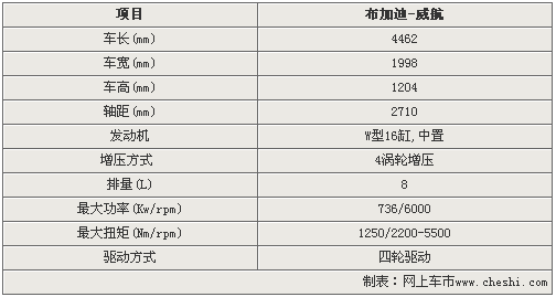 布加迪威龍(VEYRON)這個名字源自曾經駕駛布加迪57贏得1939利曼桂冠的Pierre Veyron。而16.4代表16個氣缸和4個渦輪增壓器。 這款車配備了大眾專門研發的W型16缸發動機,可以說是將兩臺V8發動機公用一根曲軸的產物。此外,該發動機還配備了4個渦輪增壓器。排量達到了7993cc。可以迸發出736千瓦的最大功率,同時在極低的1000rpm時即可輸出730牛米的龐大扭矩,在2200rpm時就可以迸發出1250牛米的峰值扭矩,這種扭力會一直持續到5500rpm。