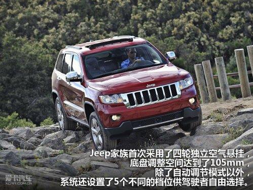 名為Quadra-Lift的空氣懸掛系統是Jeep家族首次采用的四輪獨立空氣懸掛,底盤調整空間達到了105mm,除了自動調節模式以外,系統還設置了5個不同的檔位供駕駛者自由選擇,分別為普通模式(離地間隙204.5mm)、越野1模式(離地間隙237mm)、越野2模式(離地間隙269.5mm)、泊車模式(比普通模式降低40mm)以及高速模式(比普通模式降低15mm)。