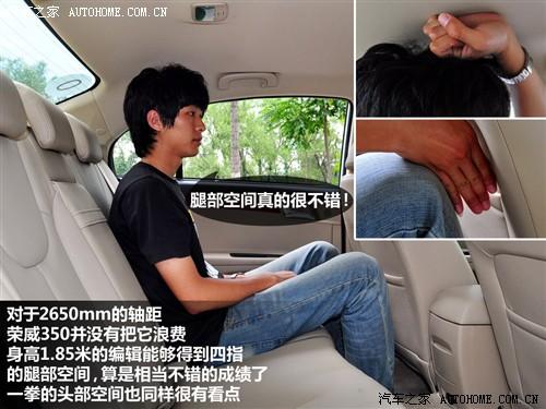 榮威350的空間表現令人滿意,身高185cm的編輯在駕駛位置調整到合適后,頭距離車頂還有4指的空間,而在前排不動的情況下來到后排,編輯的頭部空間反而擴大至一拳,而腿部也還有四指的余量。