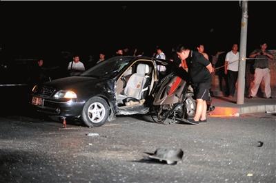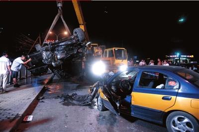 “有‘嗡嗡’的馬達聲,只看到一道黑影閃過。”目擊者翟女士說,當時酒仙橋路上一輛黑色轎車由南向北疾速行駛,“咣”地一聲悶響,迎面將一輛羚羊轎車撞得原地打轉,隨后繼續前行。緊接著,不遠處再次傳來碰撞聲,一輛逆向車道上的出租車“被黑轎車頂回去三四米”。黑轎車隨即變向,撞壞橋邊護欄墜河。