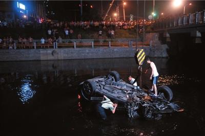 前晚(7月21日)11點,北京朝陽區酒仙橋路壩河橋梁處,一輛高速行駛的保時捷凱宴轎車先后與迎面而來的兩車相撞后,沖破河邊護欄,倒栽入水深半米的河中。車內一男子被路人救出后,聲稱尚有3人被困。消防員隨后“地毯式”排查兩小時,但并未發現車內及水中有人。該男子與被撞兩車的司機不同程度受傷,其所述被疑不實。