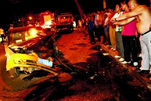 保時捷逆行連撞兩臺車 沖破護欄墜河(圖)