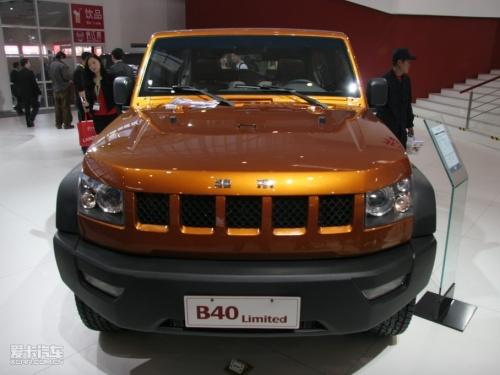 就我們目前了解到的情況看,B40車身尺寸為4200×1800×1750mm,軸距為2400mm,發(fā)動機采用2.4L直列四缸發(fā)動機,最大功率105kw(141馬力)/4800rpm,最高扭矩217N/3000-4000rpm。匹配5速手動變速箱,采用分時四驅,整體式橋,并且可選擇在后橋安裝限滑差速器,F(xiàn)RP可拆卸頂篷。