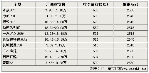 超過(guò)500L 10款15萬(wàn)以內(nèi)大尾箱車型推薦(圖)