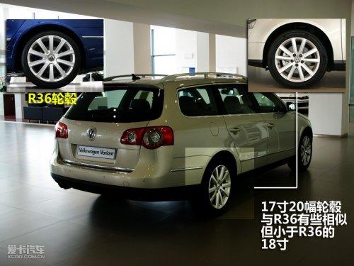 打眼一看PASSAT旅行版的十幅輪轂與R36的輪轂非常相似,仔細(xì)對(duì)比之后才能發(fā)現(xiàn)不同。PASSAT旅行版的輪轂尺寸為17寸,R36則配備了18寸輪轂,并且在細(xì)節(jié)上也有些許不同。不過從視覺上二者的確十分相似,而這款輪轂的賣相個(gè)人認(rèn)為好于目前2011款邁騰所配輪轂。輪胎規(guī)格235/45 R17,擁有較大的扁平度,在視覺更加接近了R36。