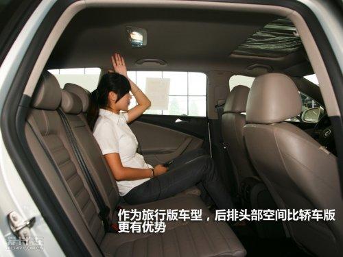 由于車頂曲線在到達(dá)C柱時不需要快速的下滑,旅行車后排頭部空間往往較轎車版本更有優(yōu)勢。從圖中可以看出模特MM坐在后排,其頭部空間可以稱之為奢侈。而PASSAT旅行版與國產(chǎn)邁騰一樣,都未對軸距進行加長,所以腿部空間并無太突出表現(xiàn),但對于模特MM而言已完全足夠。