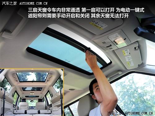 發現沒有采用全景天窗的設計讓人遺憾,不過前后三個獨立的天窗也能帶來非常出色的采光效果。在三排座椅全部打開的情況下,后備廂可以使用的空間會非常小,所以建議平時還是收起第三排座椅為好,而將第二排座椅也放倒后,它的最大深度可以達到1910mm,不過地板并不是完全平坦的影響了實用性。