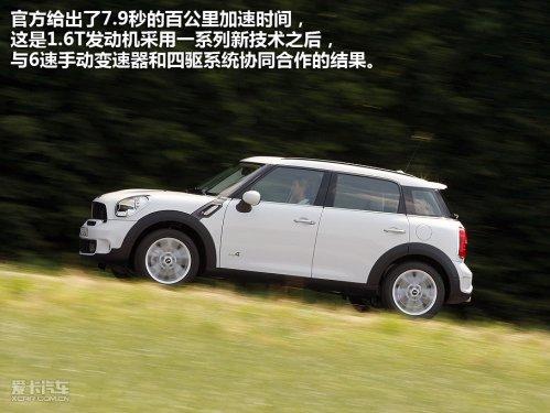 在德國,MINICountryman共有5款發動機可供選擇,MINI為我們提供的均為裝備1.6T渦輪增壓發動機與6速手動變速器的CooperS車型,與我們MINI CooperS上的那臺不同的是,新的發動機增加了燃油直噴、可變氣門管理技術,雙渦管增壓器使最大增壓值(0.8巴)出現在更低的1600rpm,這一系列的技術改進無疑令Countryman的動力更強,燃油經濟型更佳。