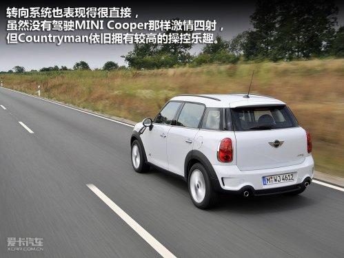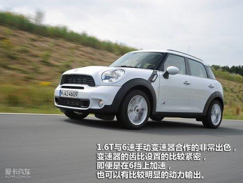整體上看,MINICountryman的駕駛感受偏向穩重,更大的車身以及更高的坐姿令駕駛感受與MINI Cooper有著較大區別。1.6T與6速手動變速器合作的非常出色,變速器的齒比設置的比較緊密,每一擋的轉速差都很小,所以,即便是在6擋上加速,也可以有比較明顯的動力輸出,不過缺點是,高速巡航時的發動機轉速偏高,在接近120km/h時掛入6擋,發動機轉速依舊維持在接近3000rpm。