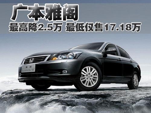 當提到中級車型大家也許會不約而同的想起廣本雅閣,新雅閣憑借其大氣的外觀、舒適的空間和豪華的配置對于中級轎車市場的構成起到了舉足輕重的作用。去年,廣汽本田又對第8代雅閣進行了小改款,對原來車型的配置有一定程度提升,部分車型增加了智能鑰匙和后遮陽板等配置,提高了雅閣整體車型的性價比。近日根據網上車市價格監測系統顯示,目前雅閣現金最高優惠2.5萬元,最低售價逼平17萬。具體價格以及優惠幅度如下: