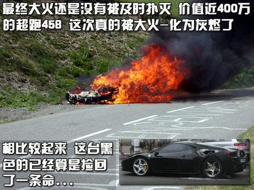 相信大家都還記得前些日子在法國巴黎發生的一起汽車自燃事件,自燃的主角是一臺全新法拉利458Italia。價值近400萬的一臺超級跑車發生自燃,讓每一個人都為它捏了一把汗,可想車主更是焦急的上跳下竄。由于及時的救助,那臺黑色的458沒有被完全燒光,至于能否繼續上路,恐怕是兇多吉少。就在同一周內,瑞士也發生了同樣的一幕,一臺紅色的458在郊區山路旁發生自燃,這次大火沒有留情,徹底將這臺超跑吞噬一空。