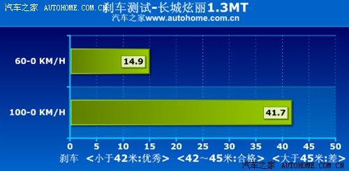 長(zhǎng)城汽車(chē)的剎車(chē)一直得到較高的評(píng)價(jià),我們對(duì)1.3L車(chē)型進(jìn)行的剎車(chē)測(cè)試中,車(chē)輛全力剎車(chē),車(chē)速?gòu)?00-0KM/h的最短制動(dòng)距離為41.7米,系統(tǒng)的穩(wěn)定性處于中等水平,剎車(chē)成績(jī)還是不錯(cuò)的,我們比較滿(mǎn)意。