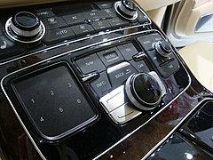 其從駕駛艙的中控臺的位置一直延伸后后排乘客空間,所配置的實用配置包括供書寫使用的小桌板以及冰箱。獨立操作的后排空調為該車的標準配置。豪華的四區自動恒溫空調將通過不少于25個的可調電動機來控制。