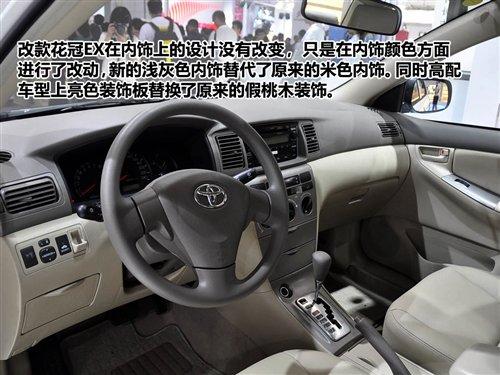 2010款花冠的改動僅僅停留在外表,內飾造型與之前車型沒有變化,高配車型用金屬代替了仿桃木飾條,看起來不再那么老氣。2600mm的軸距處于目前緊湊型家用車的偏低水平,但通過合理的空間優化,前后排的乘坐空間表現都比較合理,作為家用車來說完全沒有問題?偟膩碚f,各方面都表現比較中庸的花冠2010款車型的性價比也不錯。