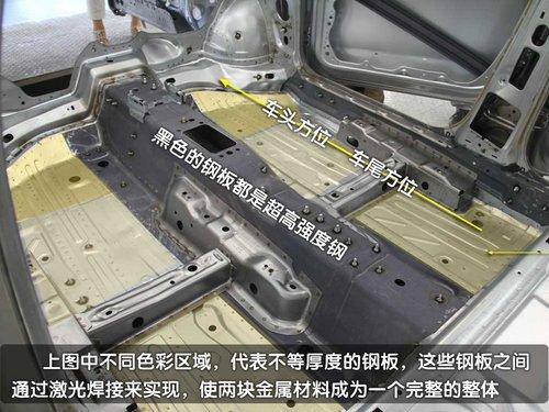 “坦克車全身都是鋼板,但是它不一定會很結實”,這就意味著車輛在設計上要使用不同屈服強度的鋼板以實現吸收能量、乘員艙不變型的目的。在上面的圖片中是一臺邁騰轎車的結構圖,整車使用了多種不同強度的鋼板,在駕駛室周圍的鋼板以及結構是最結實的,在碰撞中駕駛室部分的變形量會很小。