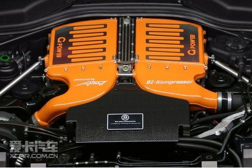 G-POWER將E60系列M5的V10發動機植入了造型優雅的X6M上,同時,強化了活塞及連桿,并將排氣量由5.0升擴充到5.5升,還增加了2個ASA T1-316機械增壓器,使該車在6800轉/分時,能夠爆發出900馬力,8000轉/分時,能夠達到870N.m的最大扭矩。但為了保證此車的動力輸出,G-POWER不得不將寶馬的6速自動變速器更換為6速手動變速器,而X-DRIVE四驅系統也不得不變為后輪驅動。