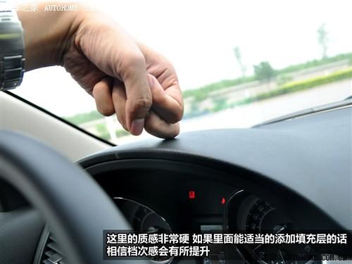 但我們并不太喜歡中控臺的覆蓋材質(zhì),尤其是中控臺頂部,由于缺少填充物這里完全是硬梆梆的。沒有親和力的手感讓人覺得不夠顯檔次。而金屬裝飾之下的部分雖然里面有填充層,但摸上去只比頂部略軟一點,依然談不上觸感細膩。