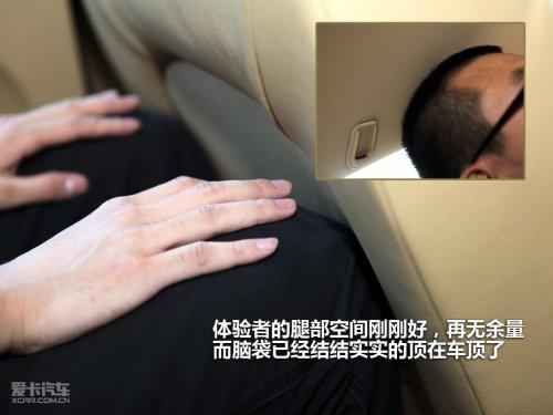 A3的軸距不小,但是與實際的表現有些出入,身高1.82米的體驗者調整好前排座椅后,坐在后排腿部空間剛好夠用,前排座椅的造型完全可以經過設計后騰出更大的地方。更不幸的是我們的體驗者腦袋已經頂住車頂了,可以說是漂亮的C柱下滑的流線犧牲了第二排的高度。
