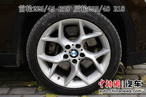 從側(cè)面看,X1與一輛傳統(tǒng)的SUV差異可就更大了,倒像是一輛轎車的旅行版。而這輛xDrive28i X1配備的18寸輪轂顯然不是為越野準備的,前輪225/45 R18后輪255/40 R18的輪胎規(guī)格完全屬于公路操控的配置。