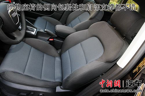 帶電動調節和腰部支撐的織物座椅的側向包裹性和肩部支撐都不錯,只是沒有真皮包裹可能是另一處容易引來詬病的地方。畢竟在很多中國購車者的觀念里,真皮終究還是“檔次”的標志之一,即使要因此而忍受冬涼夏燙的痛苦。