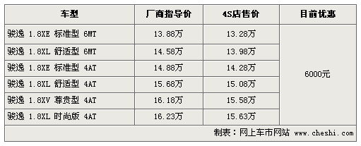 據(jù)4S店銷售人員介紹:目前駿逸無現(xiàn)車,全部需要預訂,訂車周期為1個月左右。由于駿逸銷量不佳,目前優(yōu)惠幅度達6000元,不送裝飾。