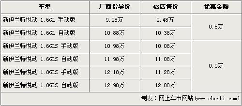 據北京現(xiàn)代經銷商處銷售人員介紹,新伊蘭特悅動全系車型最高優(yōu)惠9000元。1.6L車型經5000元優(yōu)惠后全系入門級的1.6L GL手動版的售價為9.48萬元,是全系的最低價格。銷售人員還介紹,1.6L車型現(xiàn)車充足,而1.8L車型店內現(xiàn)車有限顏色不全,欲購買無現(xiàn)車的1.8L車型消費者需交納3000元現(xiàn)金,等一周后可提車。