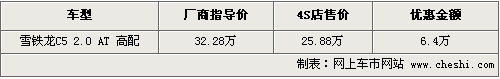 雪鐵龍C5是以進口方式引進銷售的高端豪華轎車,目前進口車型降價甩貨,最高優惠幅度達到了6.4萬元,同時國產C5將在年底推出。這款新車將投產于神龍汽車二廠的3號平臺,預計售價在20萬-25萬左右。具體行情如下: