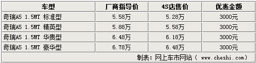 奇瑞A5超值版促銷 經銷商全系優惠3000元