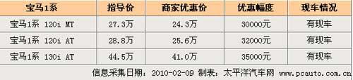 近日筆者從北京亞運村交易市場獲悉,目前購買寶馬1系轎車最高可享受3.5萬元的現金優惠,具體價格見下表: