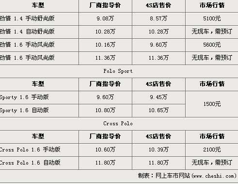 polo是上海大眾主打小型車市場(chǎng)的主力車型,目前在國(guó)內(nèi)市場(chǎng)售賣的車型為第四代小改款車型,而隨著Cross版以及Sporty車型的加入,Polo也增大了與同級(jí)車的競(jìng)爭(zhēng)力。近日據(jù)了解,polo目前全系現(xiàn)車比較緊張,現(xiàn)車最高優(yōu)惠達(dá)5600元,具體詳情請(qǐng)看下表: