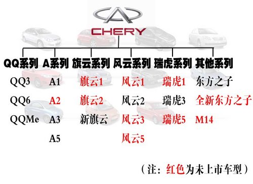 另外,奇瑞汽車銷售有限公司副總經(jīng)理劉宏偉先生還介紹了奇瑞品牌新產(chǎn)品規(guī)劃,未來將會有10款新車型推出。剛剛上市的風(fēng)云2三廂是風(fēng)云系列的首款車型,未來還會推出風(fēng)云1、風(fēng)云3和風(fēng)云5,分別為A00級、A級和B級車型。而旗云系列除了會推出旗云1以外,還會推出旗云2;瑞虎在今年年底將推出DR該款,未來還會推出瑞虎1和瑞虎5;另外,新一代東方之子和代號為B14的硬頂敞篷跑車也被列入新車規(guī)劃之中。