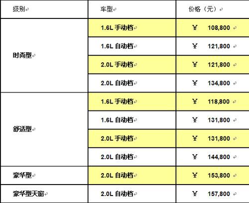 世嘉三廂價格表: