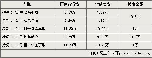 上海大眾斯柯達(dá)旗下的第二款車型晶銳已于去年12月22日上市,這款時(shí)尚、歐洲風(fēng)格鮮濃的特色小車共有1.4L、1.6L兩種排量共5個(gè)車型在售,售價(jià)區(qū)間為8.19萬(wàn)元-11.79萬(wàn)元。近日據(jù)網(wǎng)上車市網(wǎng)站價(jià)格監(jiān)測(cè)系統(tǒng)顯示,斯柯達(dá)晶銳全系最高的優(yōu)惠從6000元升到了1萬(wàn)元,具體車型價(jià)格請(qǐng)看下表: