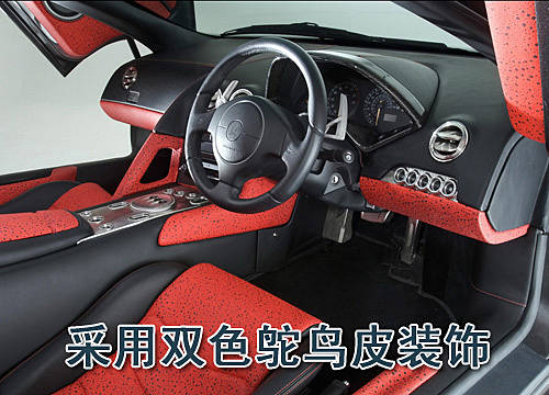 改裝后的車型車廂內部也經過了重新設置,采用了雙色調的鴕鳥皮裝飾。其它展現該車高貴氣息的配置包括儀表板和中控臺上的特殊鋁金屬裝飾。為了進一步突出該車內部裝飾的雅致,其標準的塑料通風口也由鋁質金屬所取代。