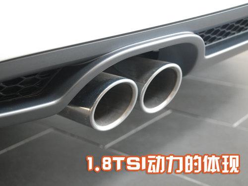位于裝飾功能大于實(shí)際作用的底邊左側(cè),并排放置著兩個(gè)排氣口,從一個(gè)側(cè)面反映了1.8TSI發(fā)動(dòng)機(jī)強(qiáng)勁實(shí)力。后擋風(fēng)做了一個(gè)略有外傾的弧度處理,上面的橙色縱橫線整齊交錯(cuò),并配有一副小巧的雨刷器。