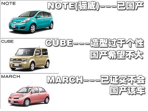 我們在查閱了日產(chǎn)國際網(wǎng)站后發(fā)現(xiàn),目前符合微型車和小排量定位的車型并不多。而上述三款車型當(dāng)中有的已經(jīng)國產(chǎn)有的則在外觀上太過于前衛(wèi)和小眾化,而早先被媒體傳言的MARCH也得到了陽玉龍先生的否定,因此看來日產(chǎn)MOCO也就成為了與東風(fēng)日產(chǎn)2010年投產(chǎn)車型最為貼切的一款。
