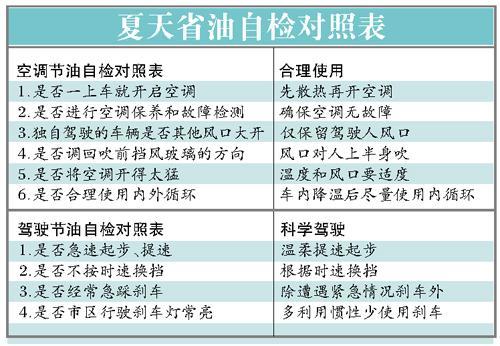 記者走訪4S店發(fā)現(xiàn),隨著天氣的炎熱,越來(lái)越多的經(jīng)濟(jì)車主因?yàn)榫痈卟幌碌挠秃,懷疑汽車質(zhì)量問(wèn)題。記者調(diào)查發(fā)現(xiàn),排除產(chǎn)品故障外,影響夏天汽車油耗最主要的因素就是空調(diào)的使用不當(dāng)。此外,因天氣造成心情浮躁導(dǎo)致的急加油和急剎車等,也白白導(dǎo)致了汽油的浪費(fèi)。售后人員指出,在科學(xué)使用空調(diào)的情況下,百公里油耗增加1~2L,屬于正常的范疇。下面,我們將跟隨節(jié)油高手的步履,走進(jìn)夏日節(jié)油的世界。
