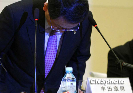 豐田章男稱,“豐田一系列的質量問題的發生,以及我本人被要求出席美國國會的聽證會,給全球的消費者和相關人士造成了影響和擔心,為了早日向中國消費者說明情況,由我親自說明情況,這次我決定從美國直飛北京和大家見面。”
