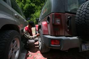 每逢雨季或夏季的來臨,山頂上的冰川和積雪往往會緩慢消融,在道路中間形成多條溪流甚至是河塘。在通過未知的溪流或池塘時,不能盲目駕車入水,應先步行涉水以確定深度;駕車涉水時要保持穩定的速度勻速行駛,車輛應與水流保持一定角度,以使發動機能夠正常運轉;在上岸之前,加大動力,幫助輪胎抓住水邊松軟的地面。牧馬人的涉水深度達到了近半米,大大優于同級車型。如果駕駛者采用正確的技術,牧馬人足以擔當一定程度的兩棲任務。