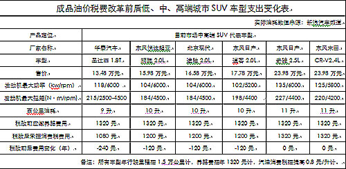 通過上面表格我們可以一目了然的看出,目前市場上中高端SUV在燃油稅開征后各家產品的成本花費。