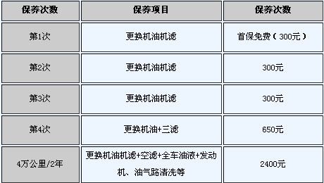 6.保養(yǎng)費(fèi)。假設(shè)一年跑2萬(wàn)公里,廠家規(guī)定每5000公里保養(yǎng)一次,一年則需要做保養(yǎng)4次。由維修點(diǎn)處可知,每隔兩萬(wàn)公里三濾全換費(fèi)用為650元,三次常規(guī)保養(yǎng)(只更換機(jī)油機(jī)濾)300元,,此外每4萬(wàn)公里或兩年要做一次全車(chē)徹底大保養(yǎng)(更換機(jī)油機(jī)濾+空濾+全車(chē)油液+發(fā)動(dòng)機(jī)、油氣路清洗等)為2400元,那么平均一年保養(yǎng)費(fèi)用花費(fèi)大概2425元左右。