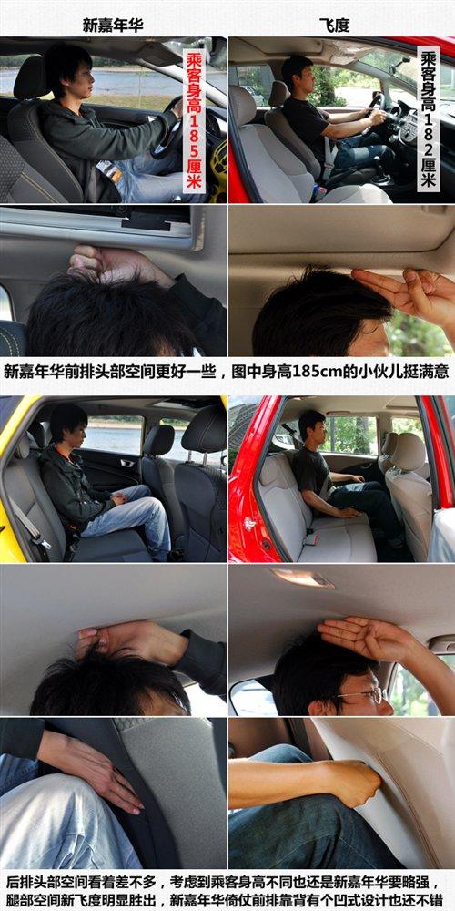 以亞洲人的身高來(lái)看,兩款車型的頭部空間都屬于夠用級(jí)別。其中新嘉年華要略好一些,至少我們圖上那位身高185cm的小伙兒就沒覺得有什么壓抑的感覺。而飛度車內(nèi)的乘客身高為182cm,頭部空間的余量顯然不如新嘉年華。