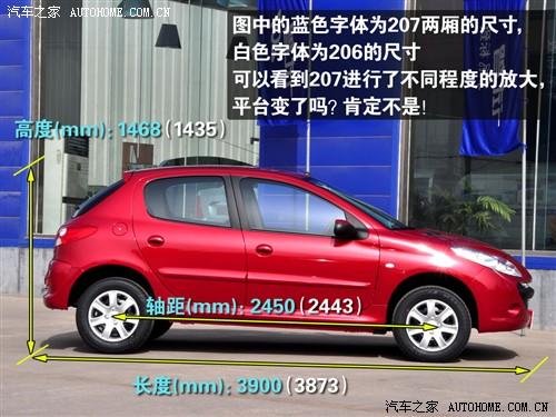 來到車身側面,206的本質還是一覽無余,你幾乎看不出任何與206的區別,但是在對比廠家的車身參數的時候,我們發現一個有趣的現象,207兩廂的長度和高度比206大一些還容易理解,但是軸距和車身寬度都長了那么不多的幾毫米,卻有點匪夷所思,不過我們肯定這還是206的平臺。